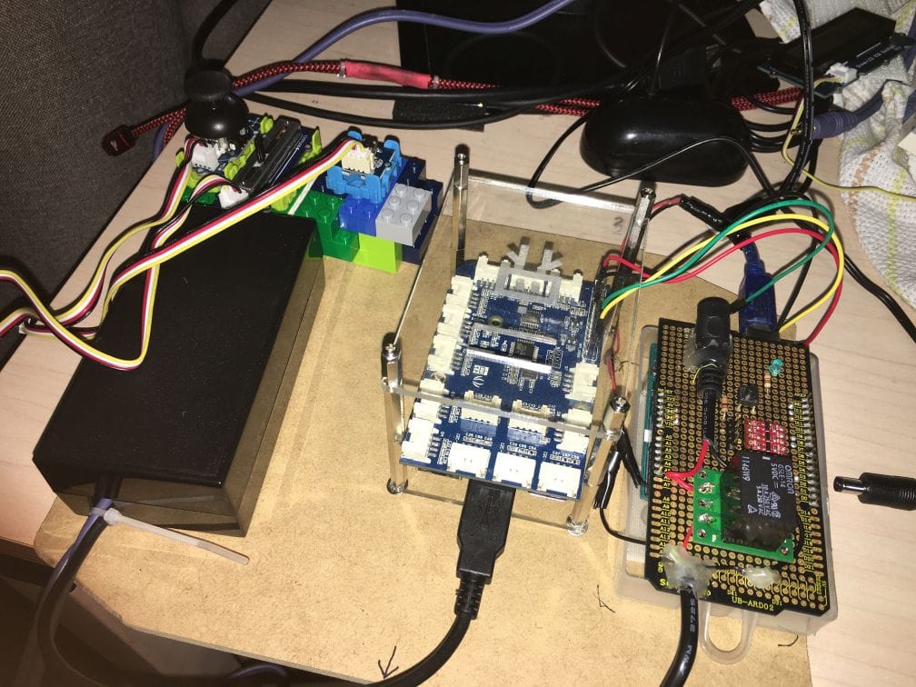 そのころSeeedのGroveというものを知って、これなら初心者でも色々電子デバイス試せる!となって色々買ってきて作ったのがこちらです。