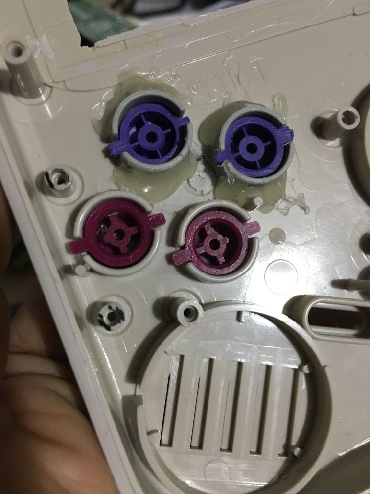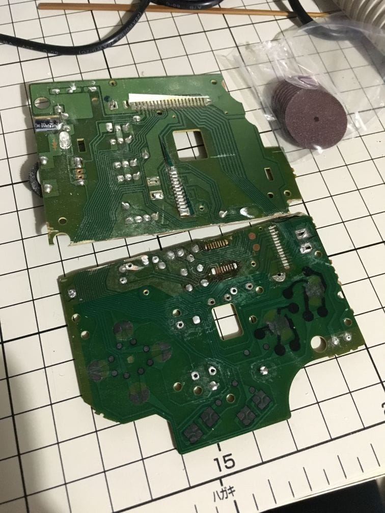 液晶のサイズを大きくするために、枠をカットして、ボタンを増やすために、穴開けたりもしました。