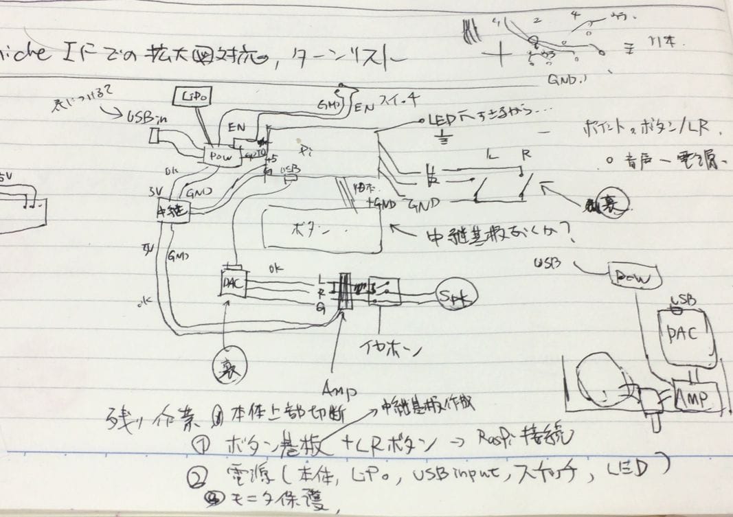 細かい設計図などはなかったので、動画を見つつ、必要な部品を整理して注文して、配線を考えたりしました。
