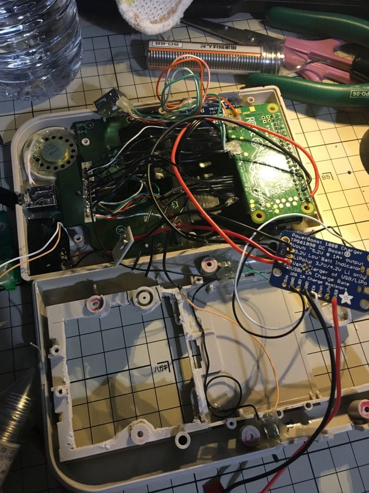 この作品では、細かいはんだ付け作業や、プラスチックの加工や、LiPoバッテリーを使ったり、かなり本格的な電子工作でした。